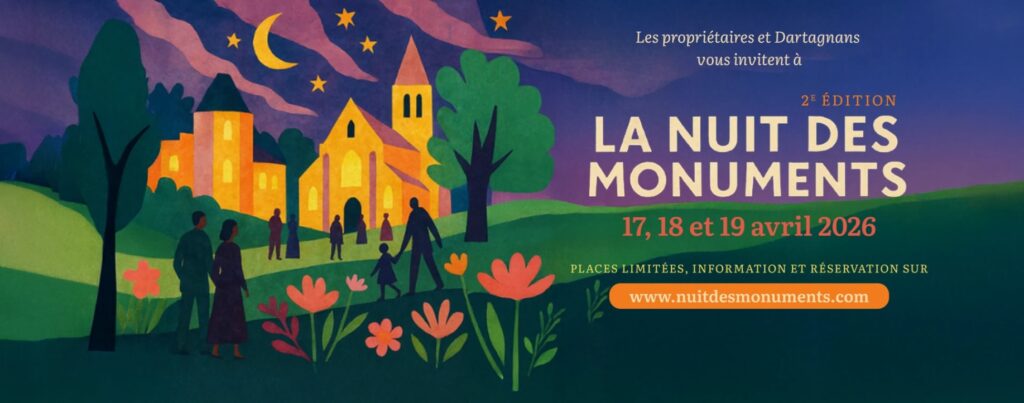 Participez à la deuxième édition de la Nuit des Monuments, les vendredi 17, samedi 18 et dimanche 19 avril 2026, et ouvrez exceptionnellement votre site au public à la nuit tombée.